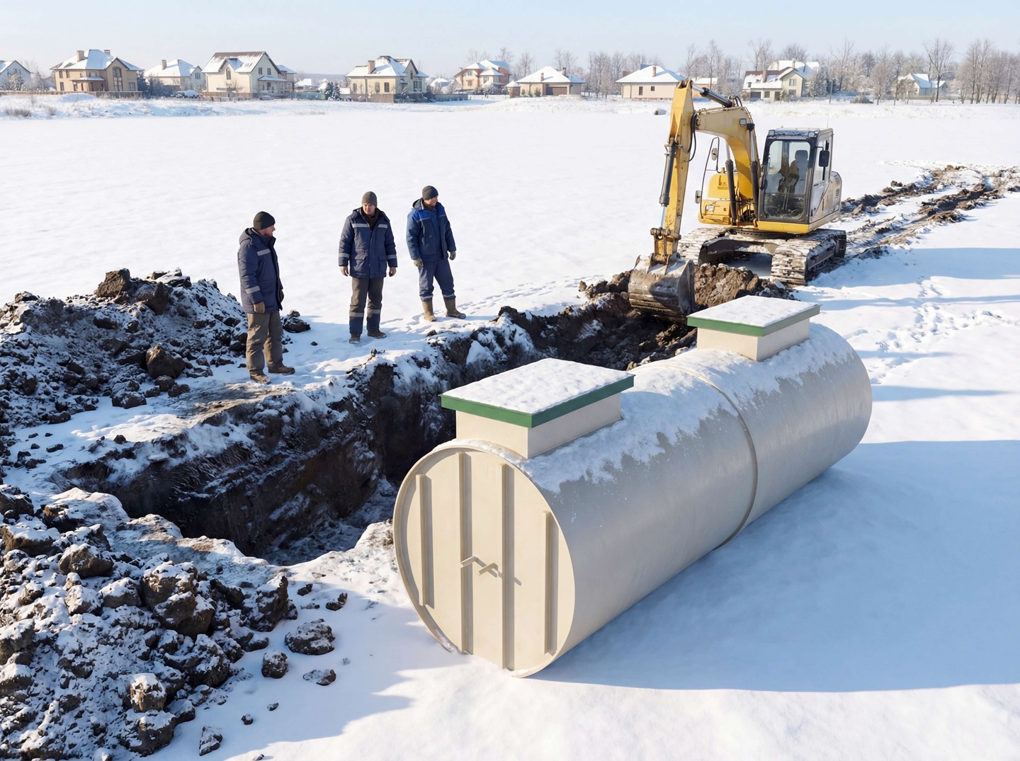 Корпус станции выполнен из первичного полипропилена — прочного и пластичного материала с длительным сроком службы, устойчивого к коррозии и агрессивным средам. Конструкция рассчитана на эксплуатацию в тяжёлых и пучинистых грунтах и не требует дополнительного якорения. Подземное размещение технологической ёмкости позволяет сохранить полезную площадь участка.