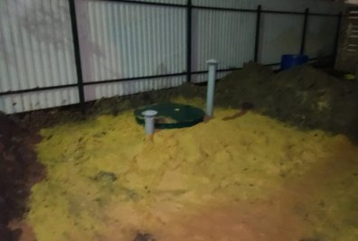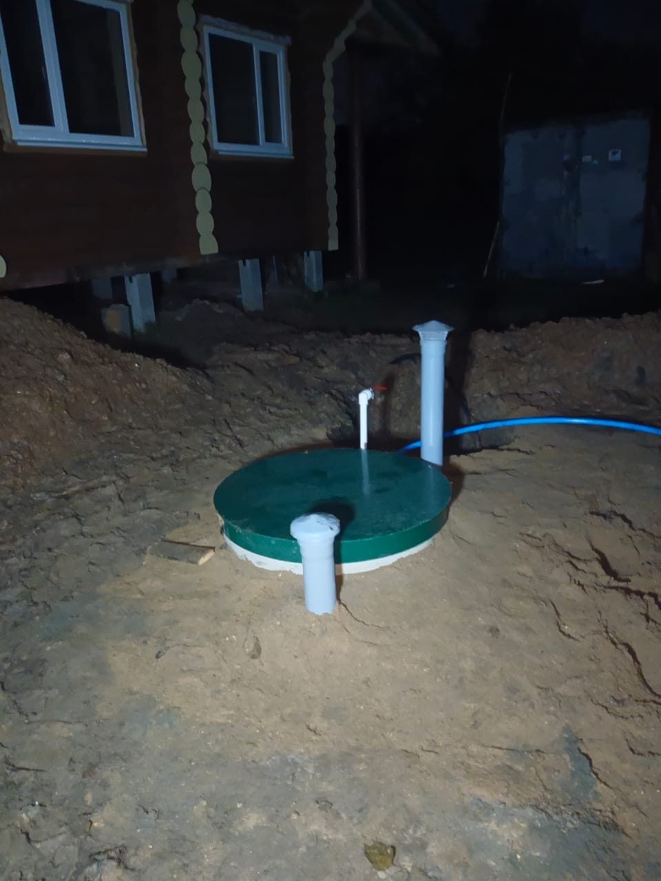 Погреб установлен аккуратно и подготовлен к эксплуатации.